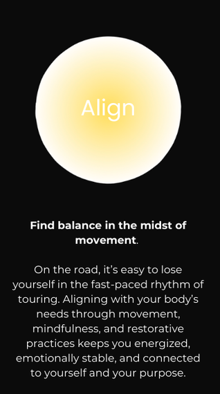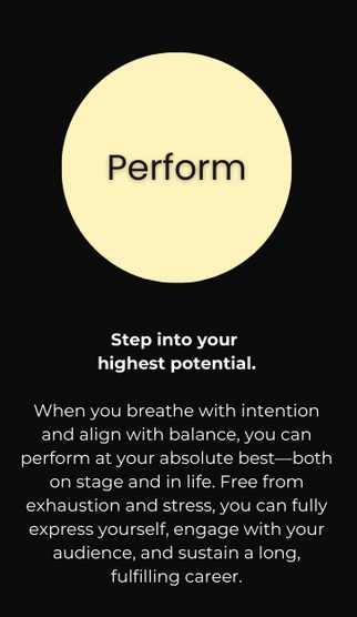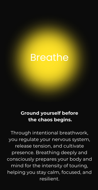 Breath On Tour provides methods designed to support artists and music professionals in managing stress, enhancing creativity, and improving both physical and mental wellbeing. Through our method individuals can experience a more balanced, focused, and sustainable approach to touring, ensuring their overall health and performance stay top-notch.